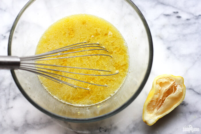 - In a small mixing bowl, whisk together eggs, milk, oils, lemon juice and lemon zest until fully combined.