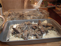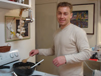 Here’s my supportive husband stirring the Mushrooms, Onion and Parmesan Cheese stuffing.