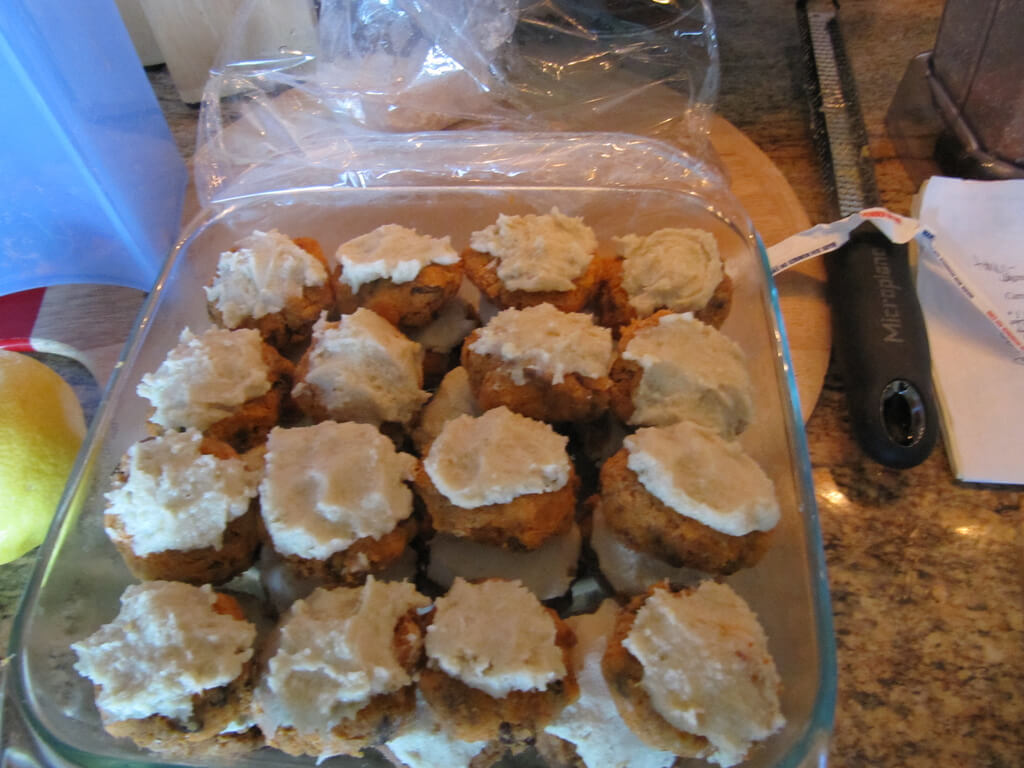 Just finished my 3rd raw carrot cupcake and can barely hold myself back from eating the 4th – they’re just too good! I can imagine them with puree from dried and soaked prunes, too. Maybe next time! And they definitely don’t taste too “healthy” :).